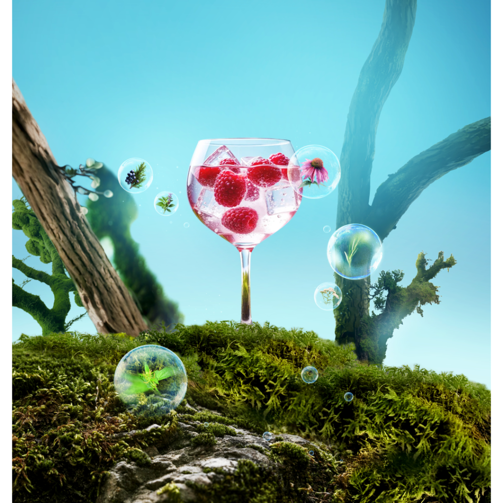 Do szklanki typu “Copa” wkładamy kostki lodu, wlewamy malinowy gin oraz tonic w proporcji 1:3. Następnie dekorujemy malinami.