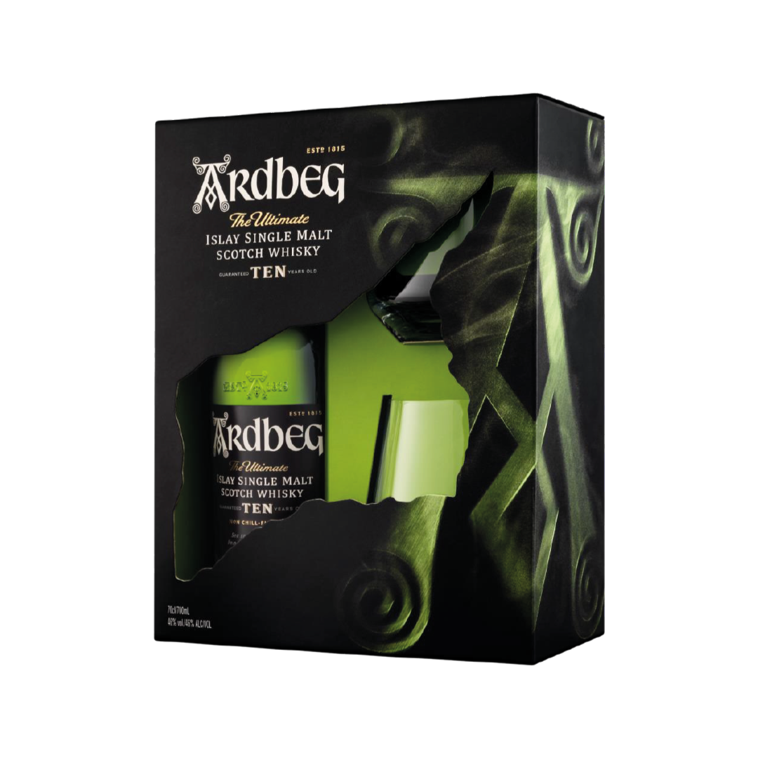 Zestaw Ardbeg 10 YO 0,7L 40% + 2 szklanki to wyjątkowa propozycja dla koneserów szkockiej whisky single malt, szczególnie tych, którzy cenią intensywne, torfowe aromaty pochodzące z wyspy Islay. Ardbeg 10-letni to jedna z najbardziej kultowych i docenianych whisky na rynku, słynąca z charakterystycznej mieszanki dymu torfowego, nut cytrusowych, wanilii oraz korzennych przypraw.