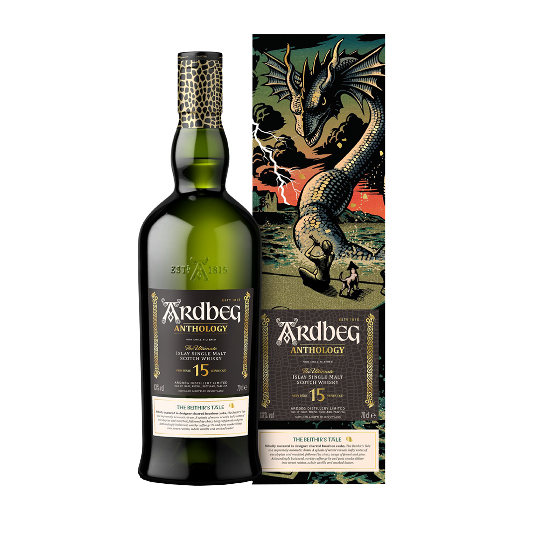 Ardbeg Anthology 15 Years Old The Beithir’s Tale to niezwykła, limitowana edycja szkockiej whisky single malt z legendarnej destylarni Ardbeg z wyspy Islay. Nazwa „Beithir’s Tale” nawiązuje do szkockiego mitu o wężu burzowym Beithir — potężnym duchu błyskawic i ognia. Ten motyw idealnie oddaje charakter tej whisky: intensywny, dziki, a zarazem zaskakująco elegancki.