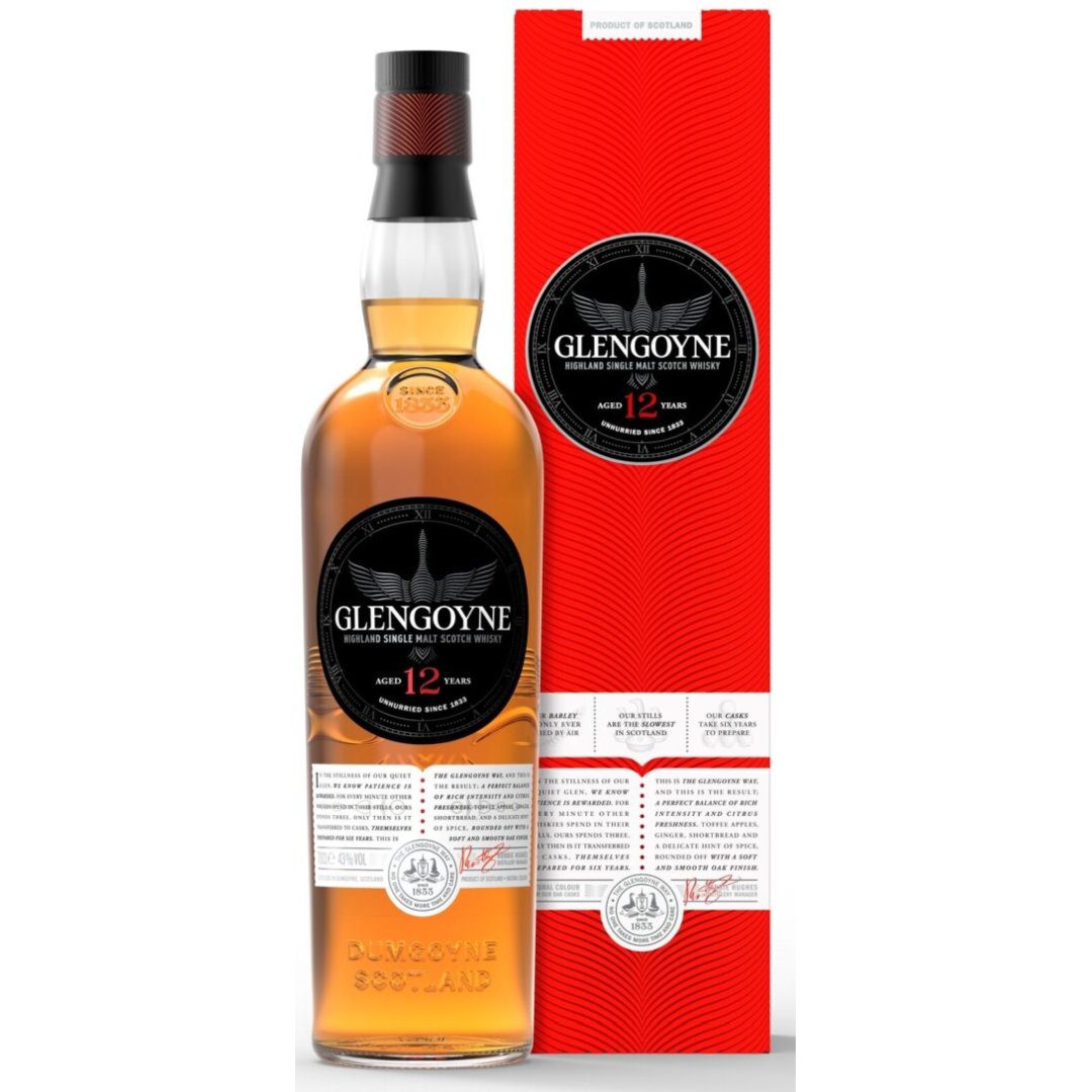 Glengoyne 12 Year Old Highland Single Malt Scotch Whisky to wysokiej jakości szkocka whisky single malt produkowana przez destylarnię Glengoyne Distillery, położoną na granicy regionów Highlands i Lowlands. Trunek powstaje w tradycyjny sposób, z wykorzystaniem powolnej destylacji oraz jęczmienia suszonego gorącym powietrzem, dzięki czemu whisky zachowuje czysty, naturalny charakter bez torfowych nut dymnych.