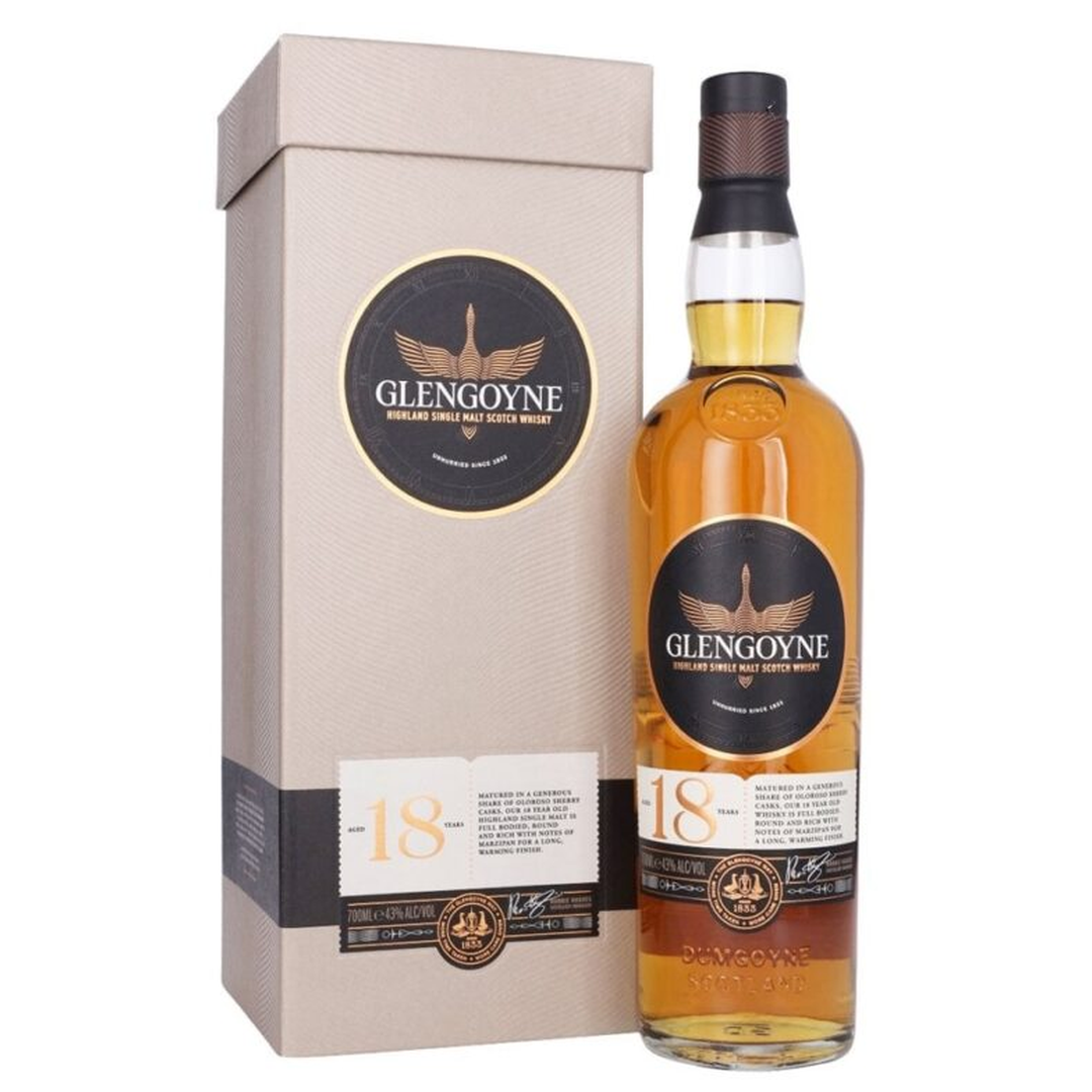 Glengoyne 18 Year Old Highland Single Malt Scotch Whisky to dojrzała i elegancka whisky single malt produkowana przez renomowaną destylarnię Glengoyne Distillery, położoną na granicy szkockich regionów Highlands i Lowlands. Destylarnia słynie z bardzo powolnego procesu destylacji oraz z używania jęczmienia suszonego gorącym powietrzem zamiast torfowego dymu, dzięki czemu whisky zachowuje czysty i naturalny charakter bez torfowych nut.