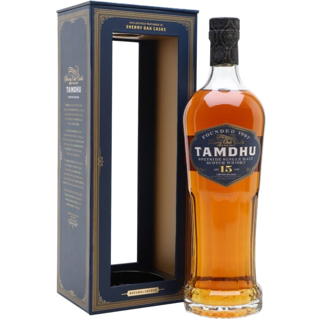 Tamdhu 15YO Sherry Oak Casks 46% 0,7 l to single malt, który przez 15 lat dojrzewał w starannie wyselekcjonowanych beczkach po sherry, rozwijając bogaty, wielowarstwowy profil smakowy. Aromat ujawnia nuty suszonych owoców, miodu, karmelu, czekolady oraz subtelnych przypraw korzennych, tworząc elegancką i wyrafinowaną kompozycję.