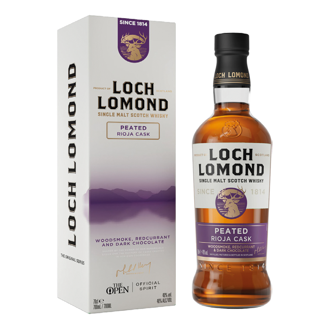 Whisky Loch Lomond Original Peated Rioja Single Malt 40% 0,7L to wyjątkowy szkocki trunek, który łączy tradycję torfowych single maltów z charakterem beczek po hiszpańskim winie Rioja. Starannie leżakowana, rozwija złożony aromat – początkowo wyczuwalna jest subtelna dymność torfu, a następnie owocowe nuty czerwonych i ciemnych winogron, delikatna wanilia oraz przyprawy wynikające z dojrzewania w beczkach po winie.