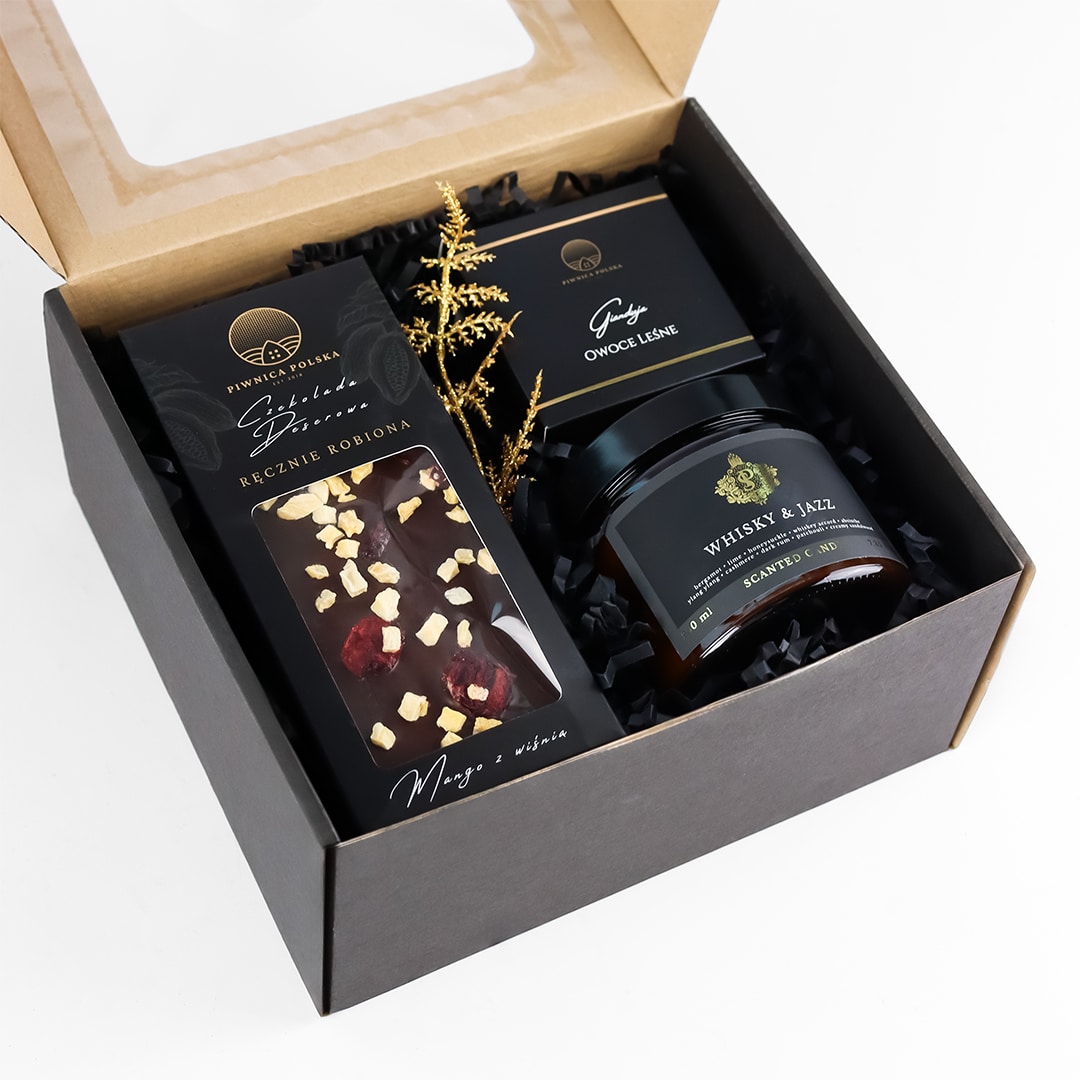 Zestaw upominkowy Czarny Podarunek to połączenie smaku, zapachu i estetyki – niewielki prezent o dużym znaczeniu, który tworzy atmosferę i zostaje w pamięci.