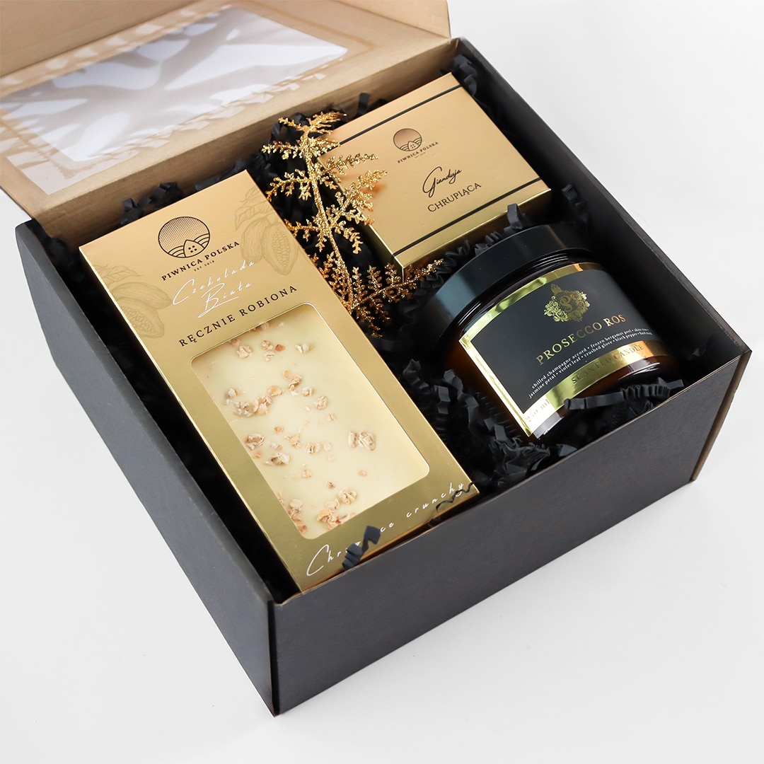 Zestaw upominkowy Złoty Podarunek to połączenie smaku, zapachu i estetyki – subtelny prezent, który buduje atmosferę i podkreśla wyjątkowość każdej okazji.