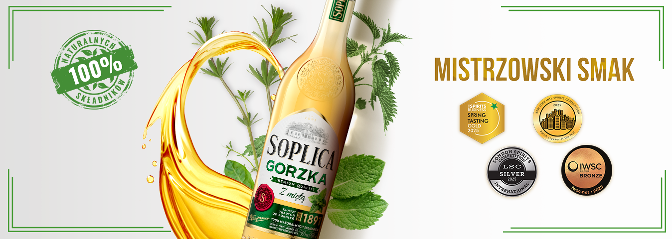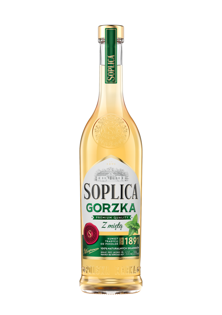 Połączenie wysokiej jakości spirytusu, maceratu z niedojrzałych pomarańczy oraz maceratu z wyselekcjonowanej mieszanki ziół białowieskich wzbogacone miętą pieprzową. Soplica Gorzka z miętą to propozycja do smakowania lub jako składnik oryginalnych koktajli.